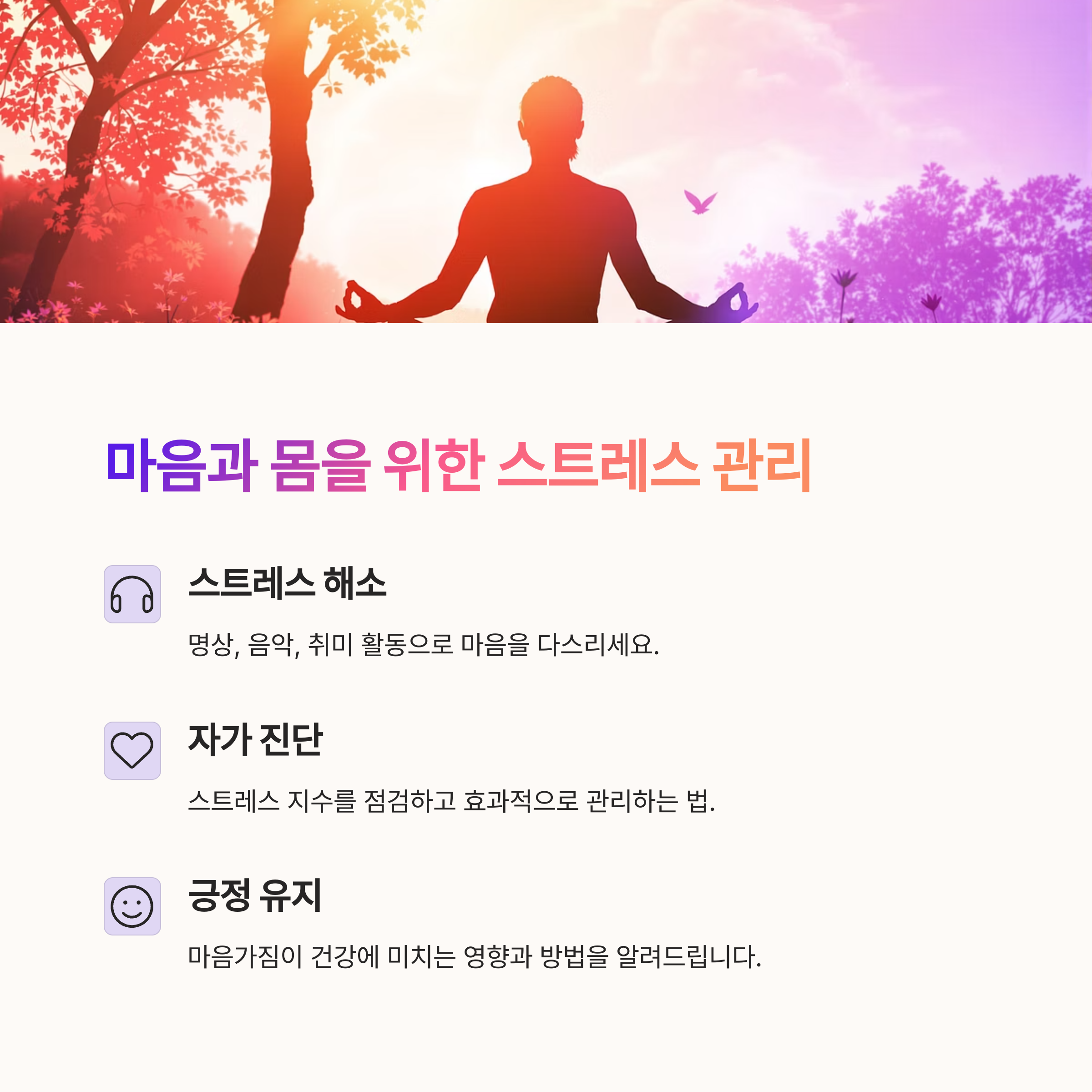 "스트레스를 잘 다루는 것이 진정한 건강 관리입니다."
