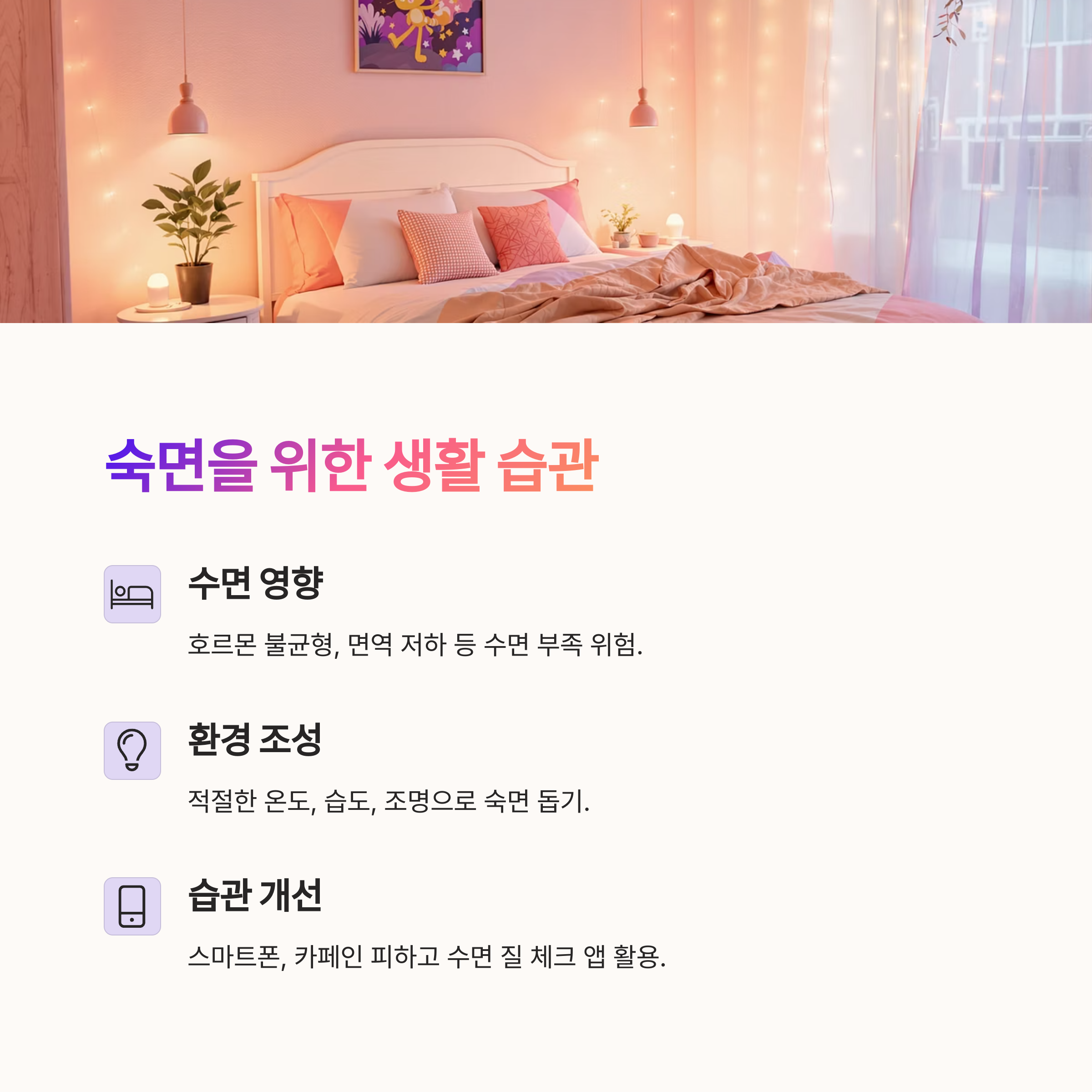 취침 시간을 일정하게 지키고, 자기 전 스마트폰 사용을 줄이는 것부터 시작하세요.