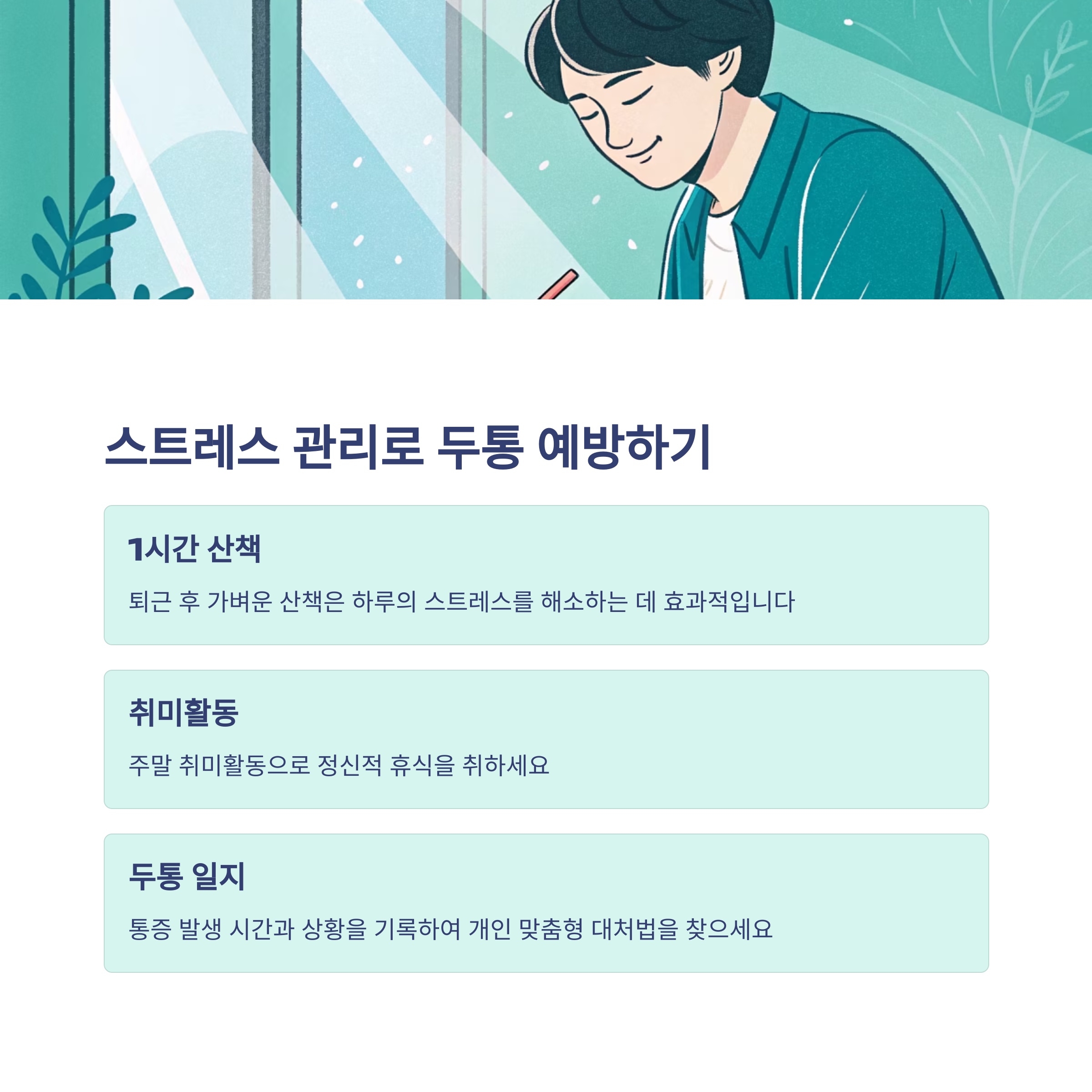 "긴장성 두통 관리의 핵심은 일상의 스트레스 관리를 습관화하는 것"입니다.