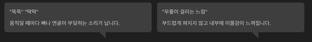 - 무릎이 부드럽게 움직이지 않는 느낌