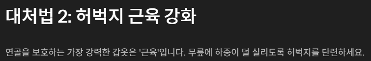 특히 소리 + 통증이 동시에 있다면 연골 손상 가능성이 확 높습니다.