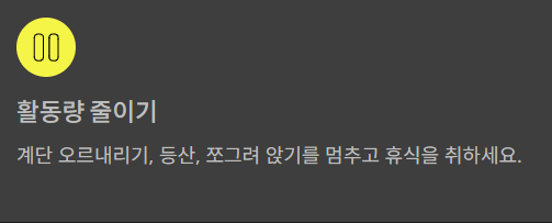 초기에는 활동량 조절만으로도 증상이 크게 완화되는 경우가 많습니다.