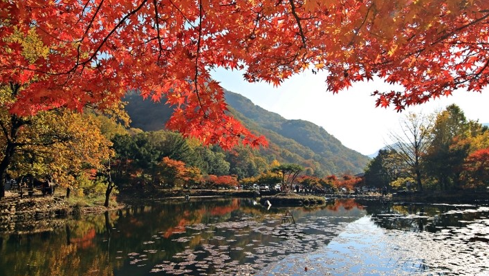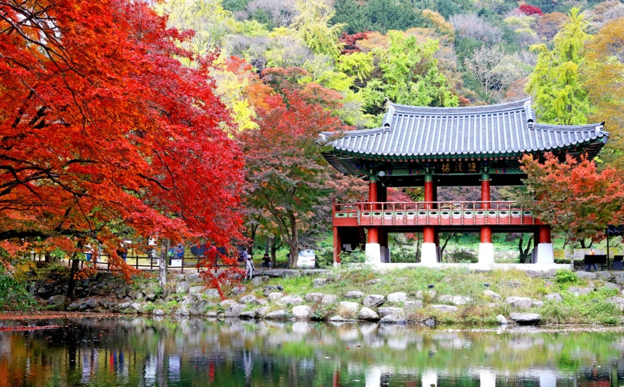 백양사는 봄의 벚꽃도 아름답지만, 사실 가을 단풍도 절대 놓치면 안 되는 포인트예요. 특히 사찰 입구의 쌍계루와 연못을 배경으로 단풍이 붉게 물드는 그 장면은, 말 그대로 엽서 속 풍경 그 자체랍니다. 가을에는 관광객이 조금 더 많아지긴 하지만, 여전히 붐비지 않고 차분하게 즐길 수 있는 편이에요.