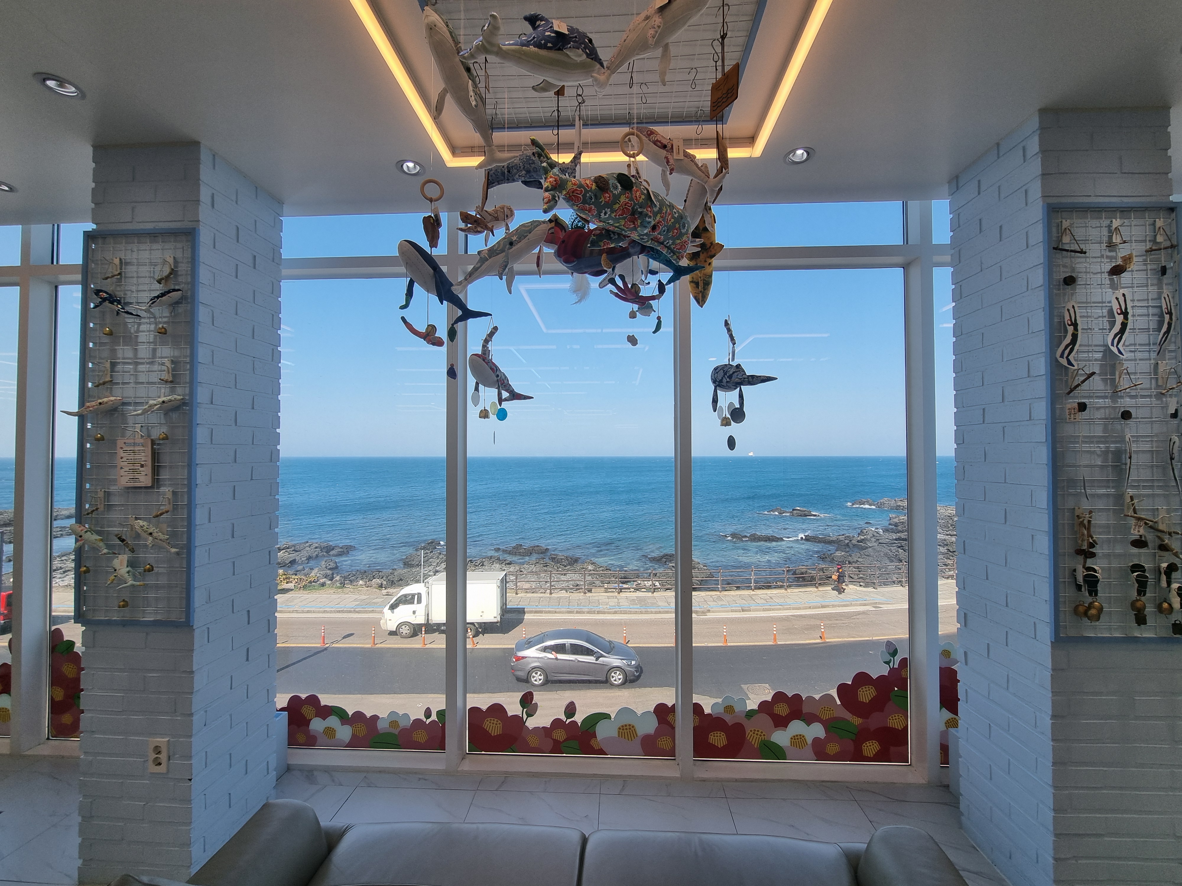 여행의 피로를 풀어주는 아늑한 소파와 창밖 바다 풍경, 그리고 하나하나 정성스럽게 고른 제품들 속에 담긴 제주 이야기. 이 모든 게 어우러져 그저 스쳐 지나가는 공간이 아닌, 머물고 싶은 장소로 느껴지게 했어요.