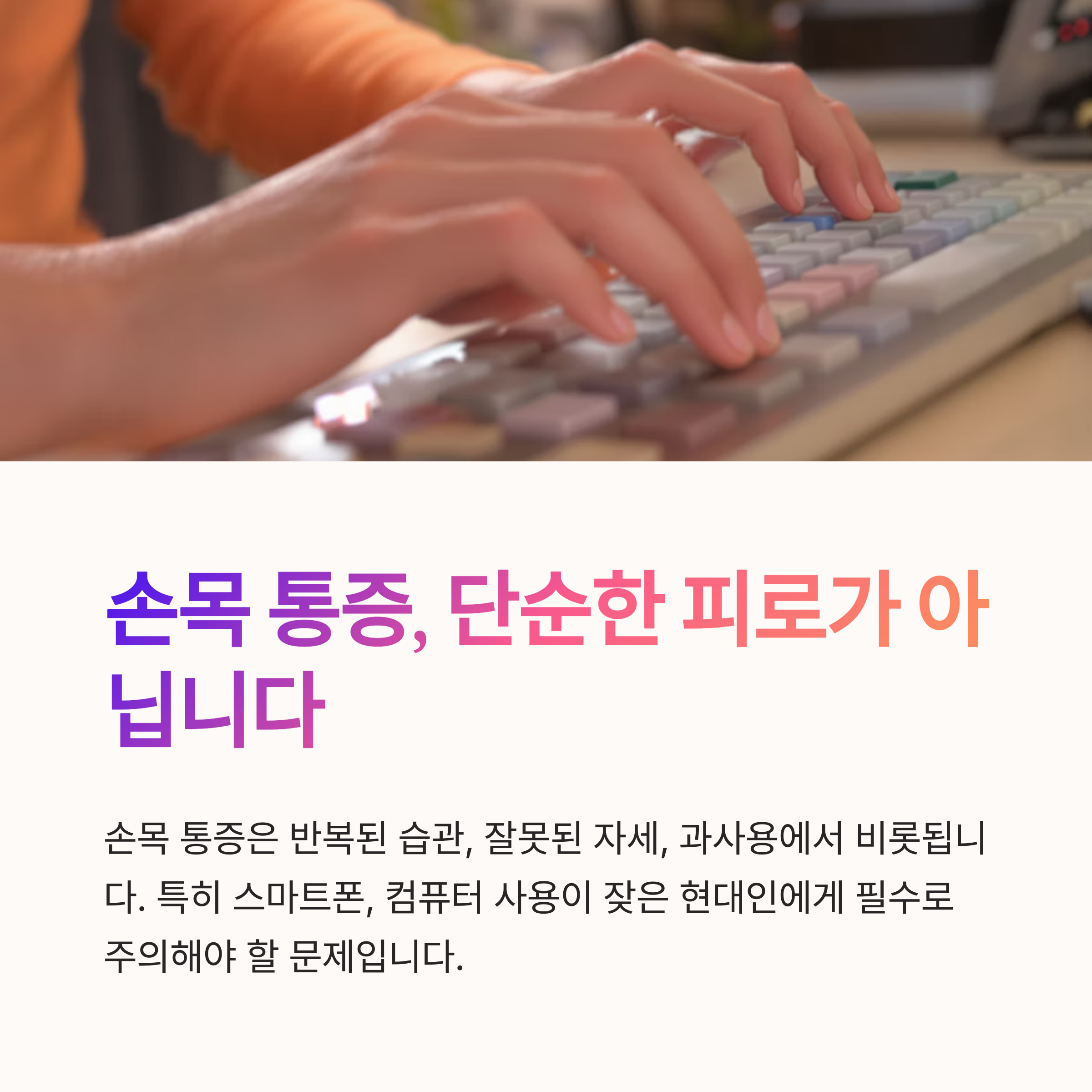 이번 글에서는 손목 통증의 핵심 원인과 일상 속 위험 요소들을 구체적으로 살펴보고,