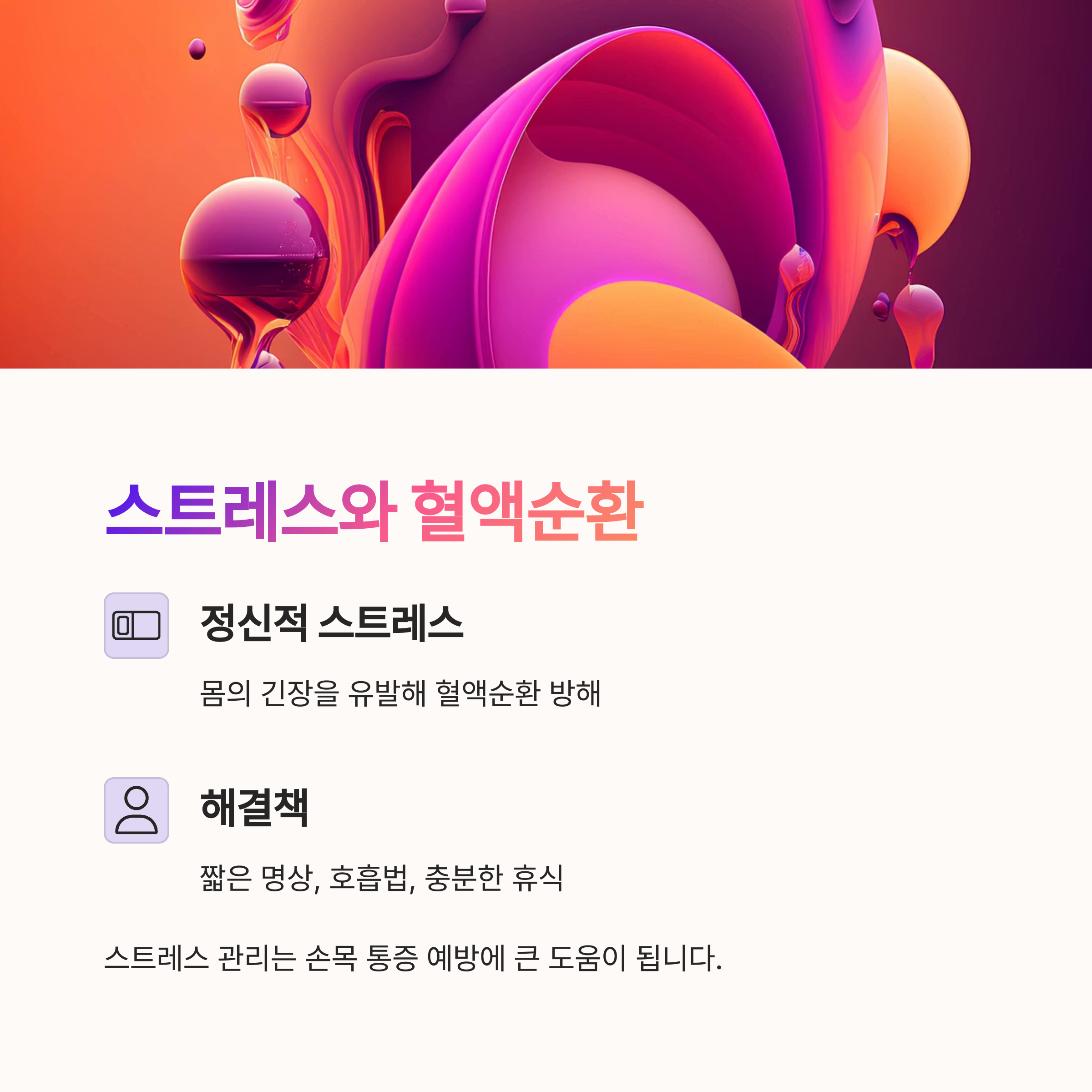 정신적 스트레스는 몸의 긴장을 유발해 손목 부위 혈액순환을 방해합니다.