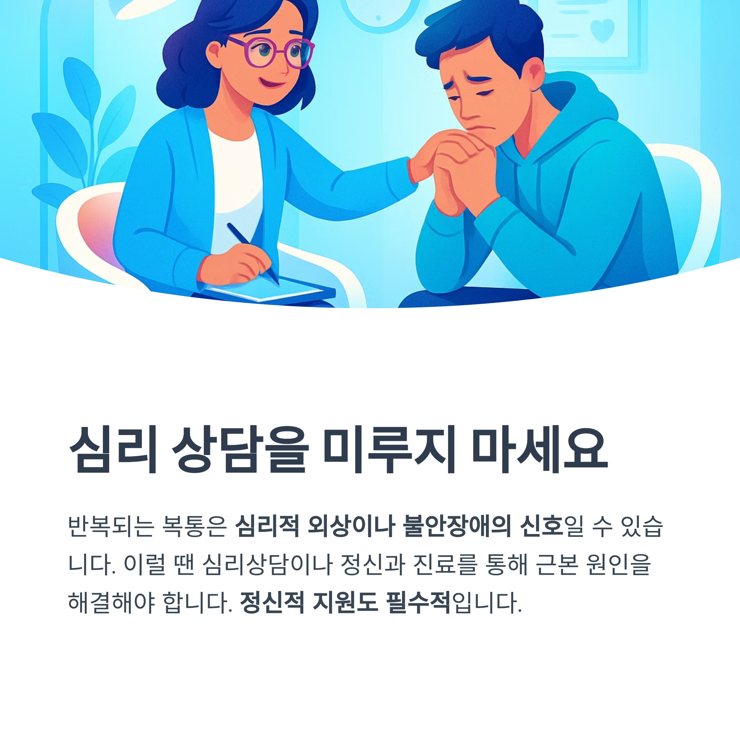 심리적 불안이나 우울이 소화 기능을 저해하며, 이로 인해 장기적으로 복통이 만성화될 수 있습니다.