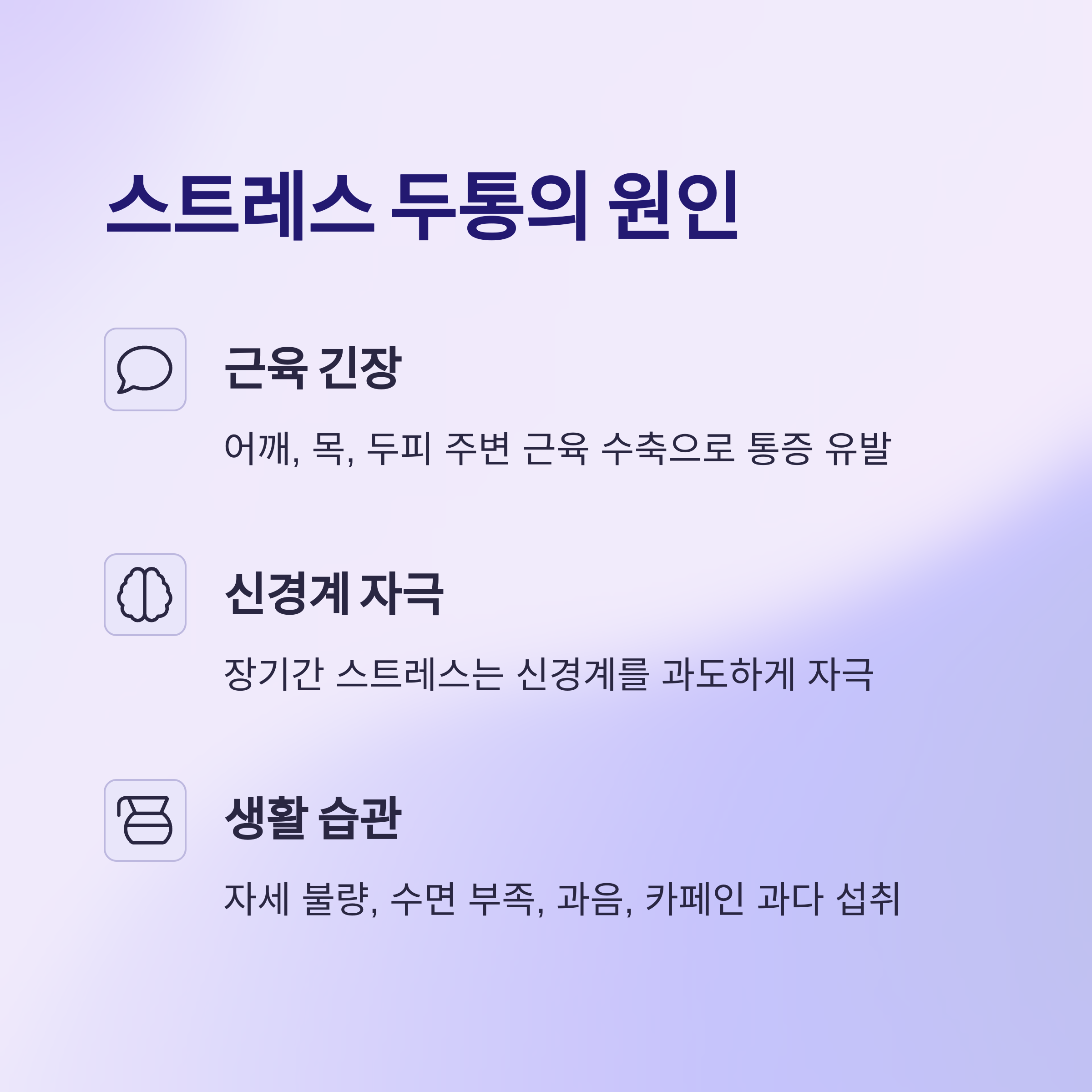 "장기간 스트레스는 신경계를 과도하게 자극해 만성 두통을 악화시킬 수 있습니다."