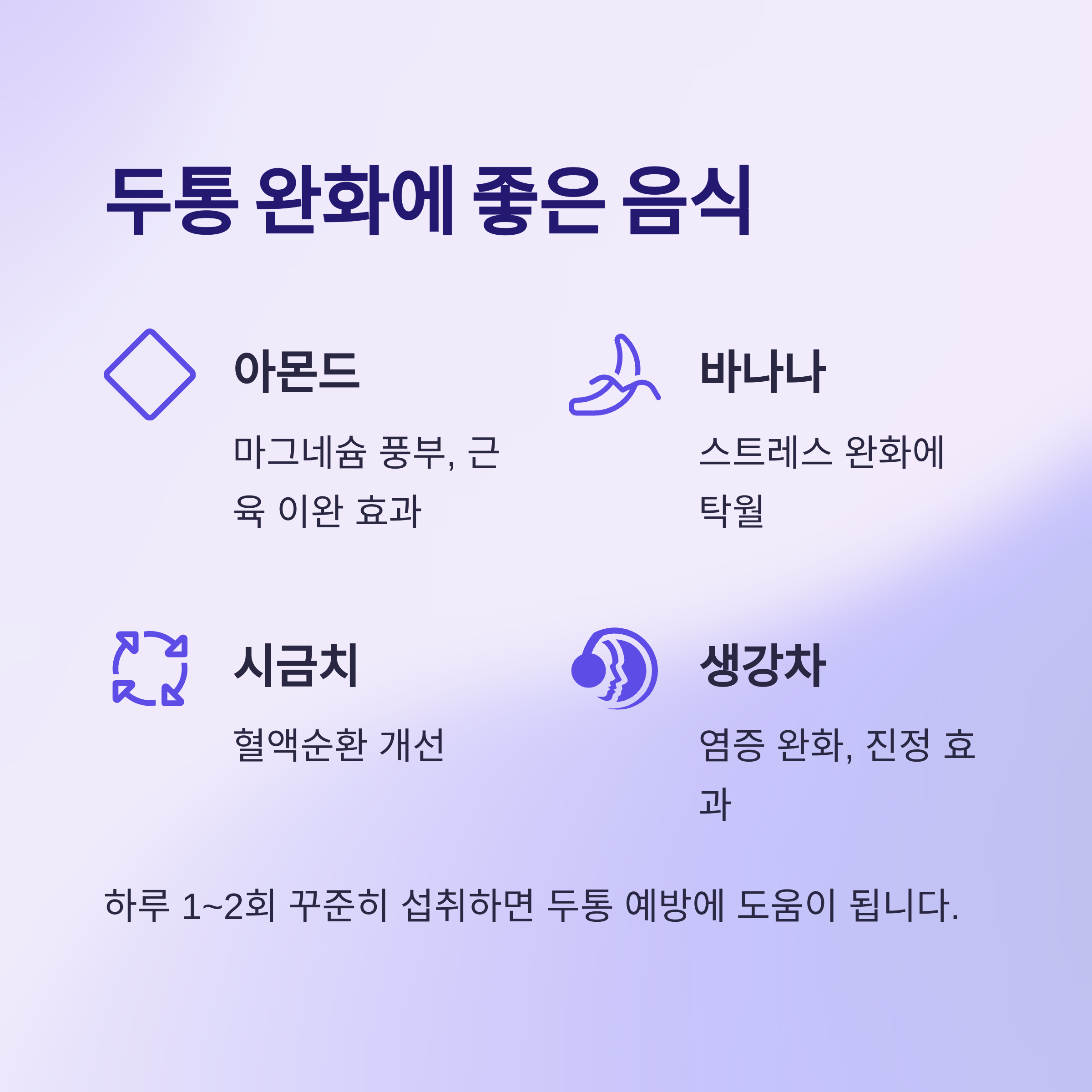 하루 1~2회 꾸준히 섭취하면 두통 예방에 도움이 됩니다.