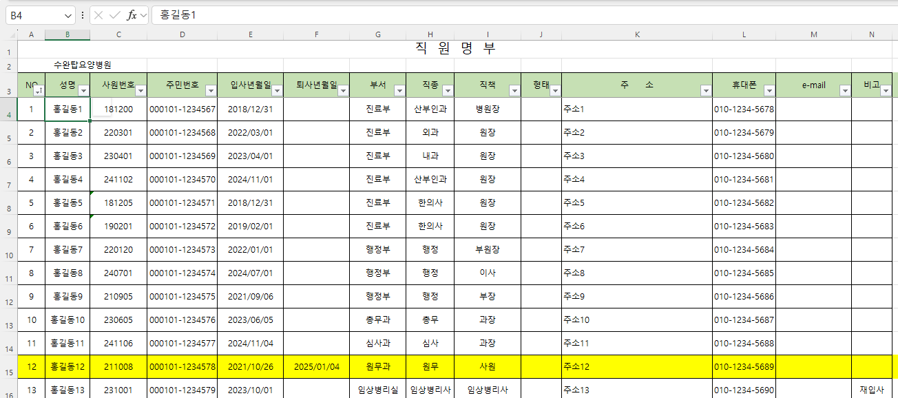 재직자부터 퇴사예정자까지 한 번에? 눈 빠지던 인사 필터링, 이젠 수식 한 방이면 끝나요~ 퇴사자 명단 뽑...