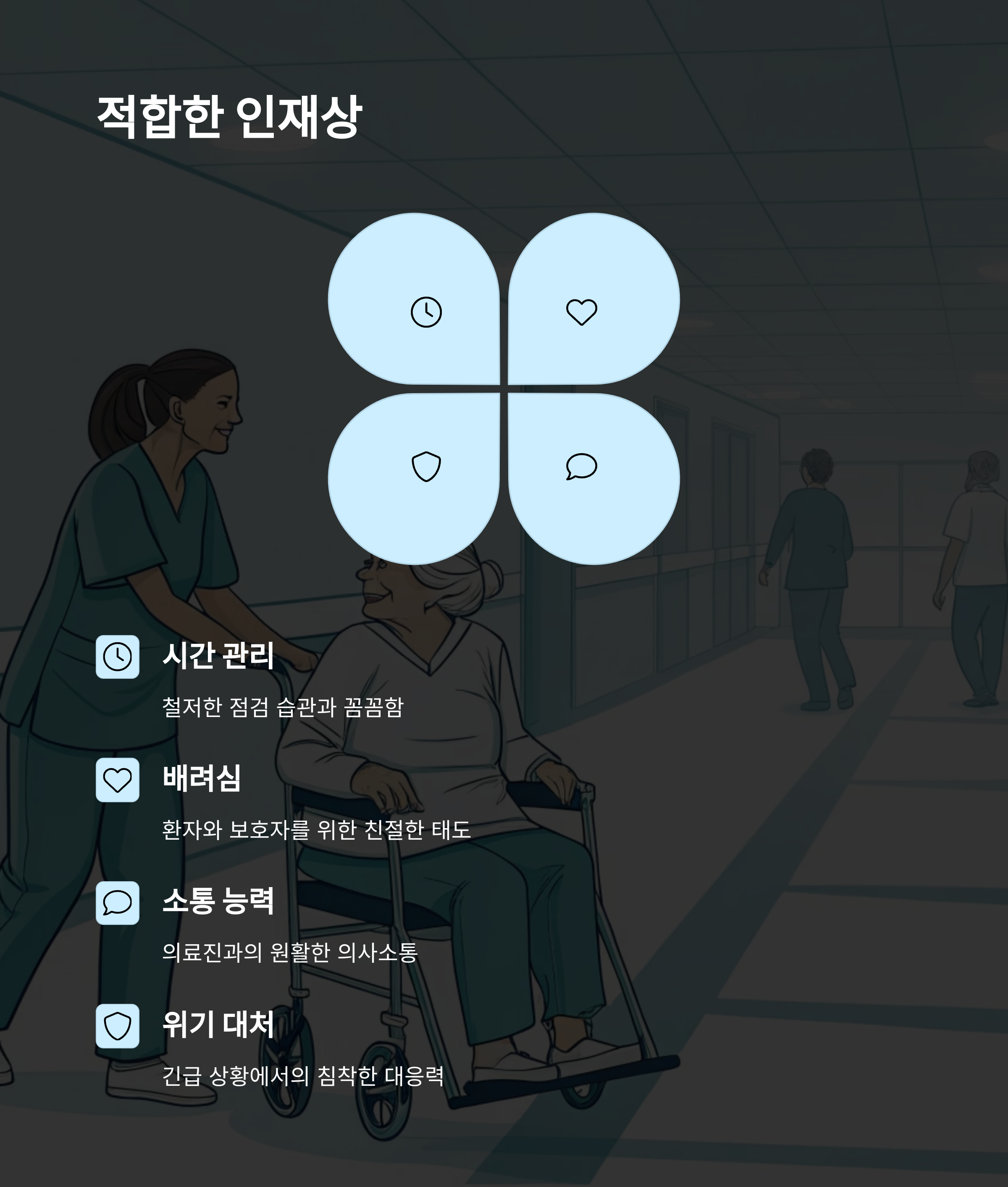 요양병원 시설관리직 채용 시 다음의 조건이 중요하게 작용합니다.