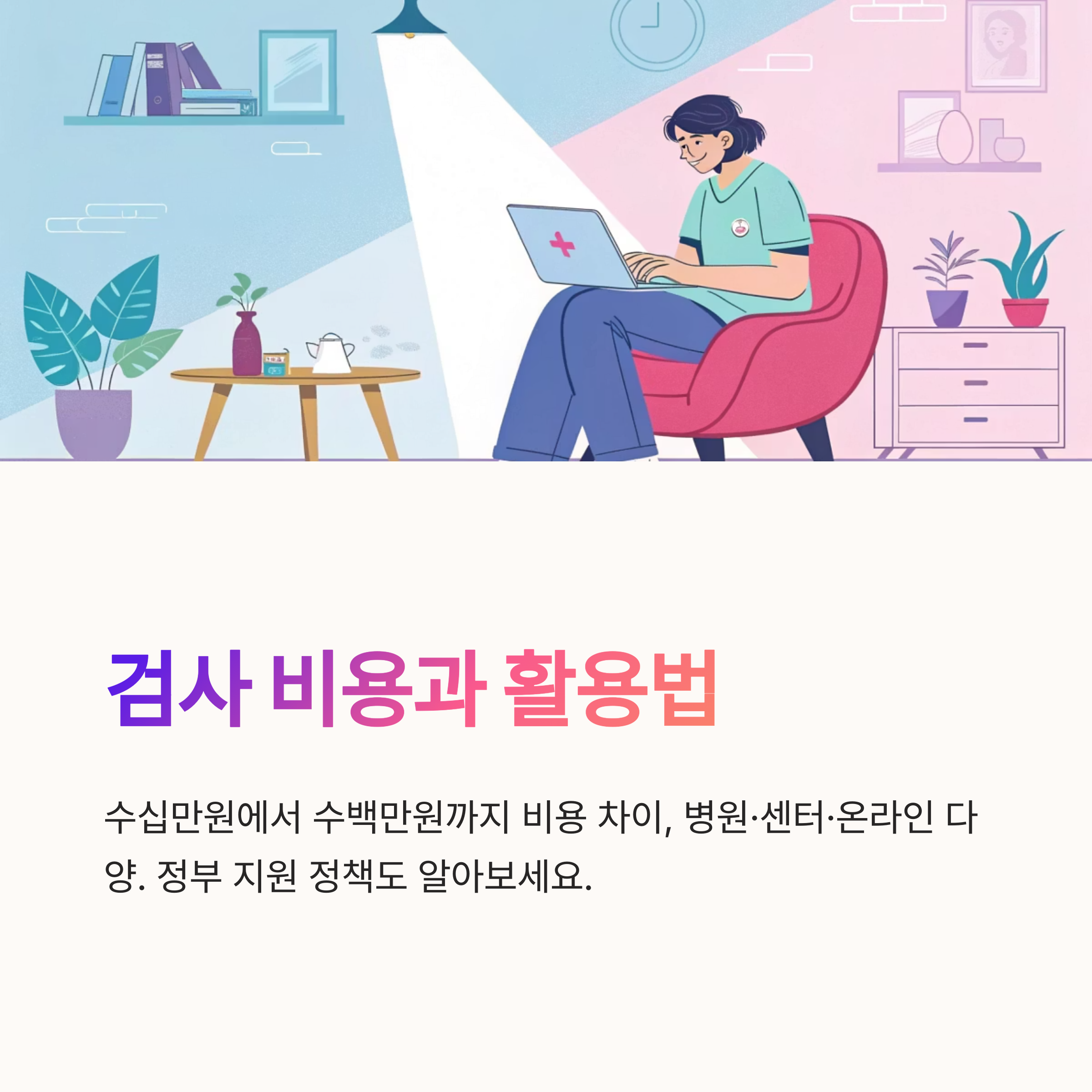 몇만 원대의 기본 검사부터 고급형 검사까지 다양한 선택지가 있습니다.
