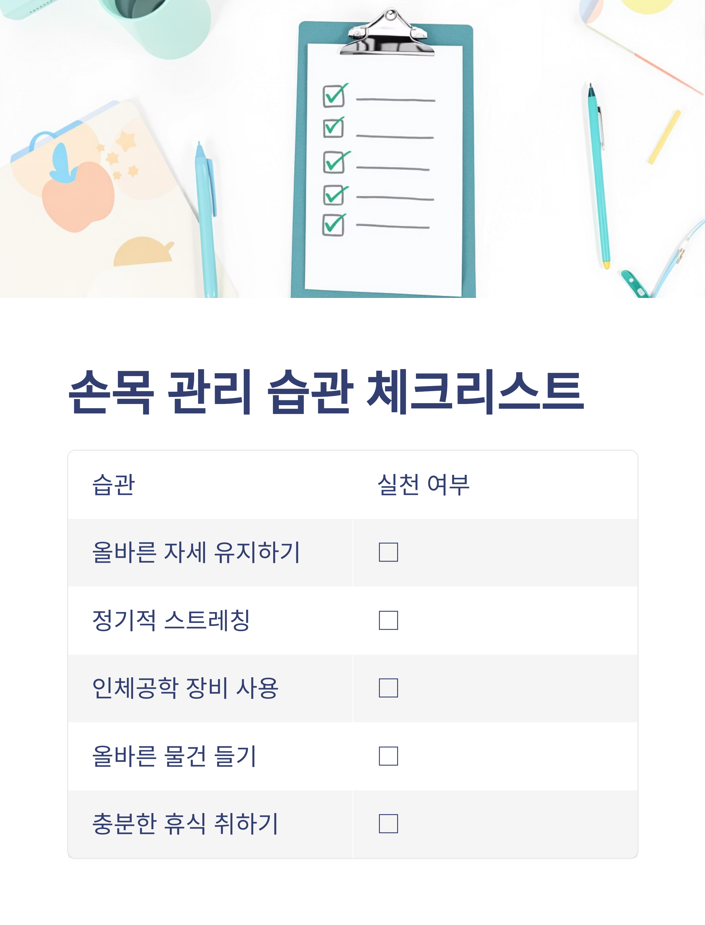 손목 관리 습관 체크 표