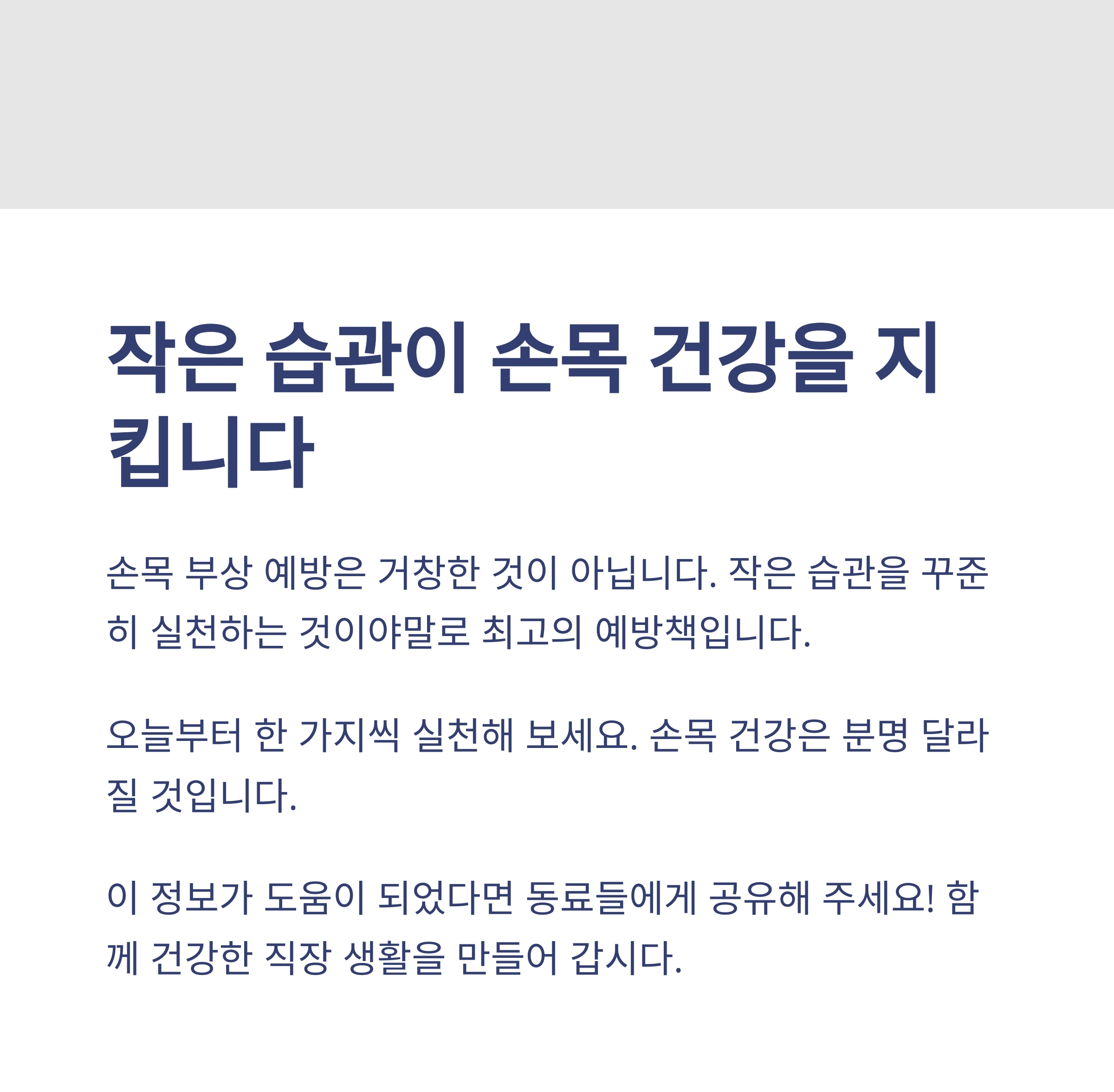 오늘부터 한 가지씩 실천해 보세요. 손목 건강은 분명 달라질 것입니다.