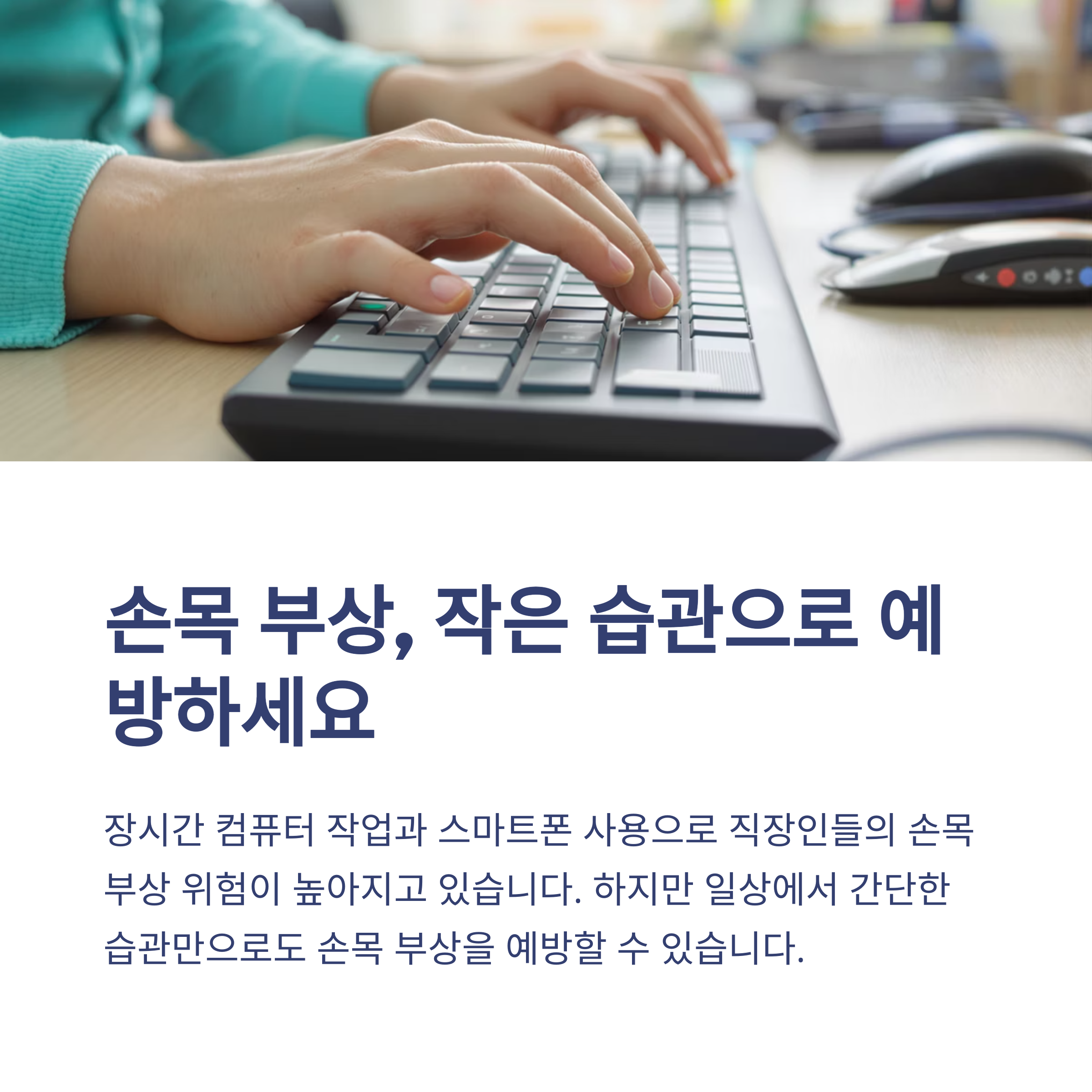 이번 글에서는 실천하기 쉬운 직장인 맞춤 손목 보호법을 소개하겠습니다.