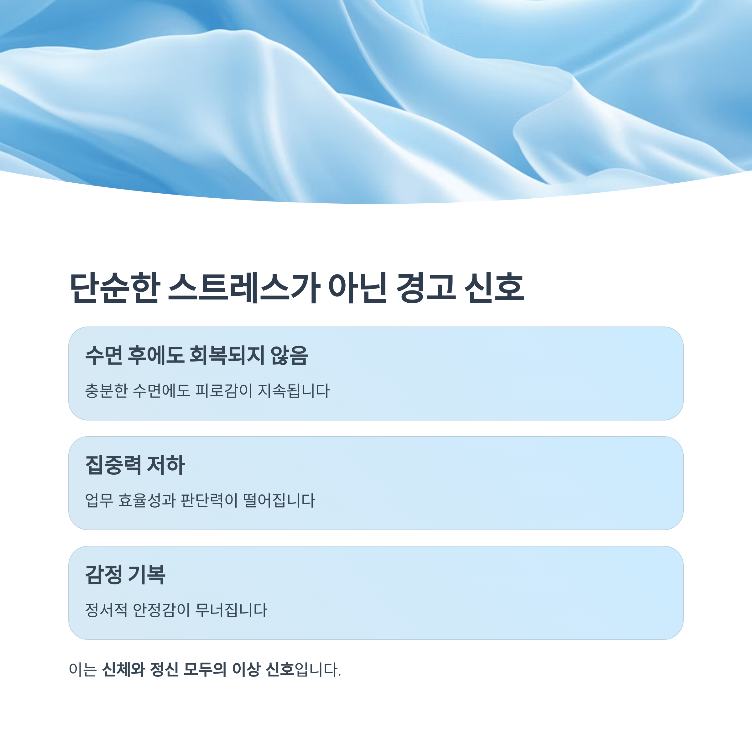 하지만 수면 후에도 회복되지 않는 피로, 집중력 저하, 감정 기복이 동반된다면