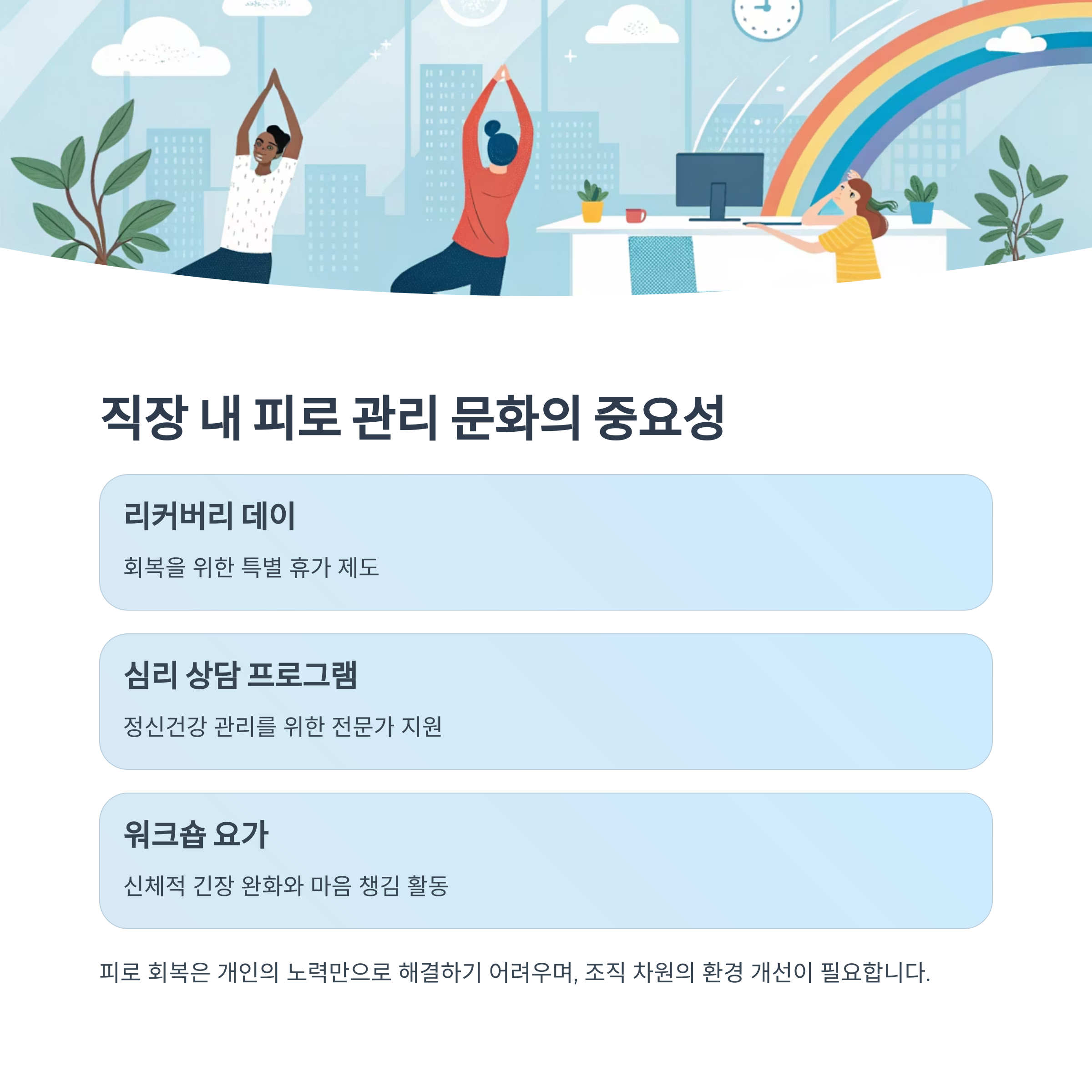 피로 회복은 개인의 노력만으로 해결하기 어려우며,