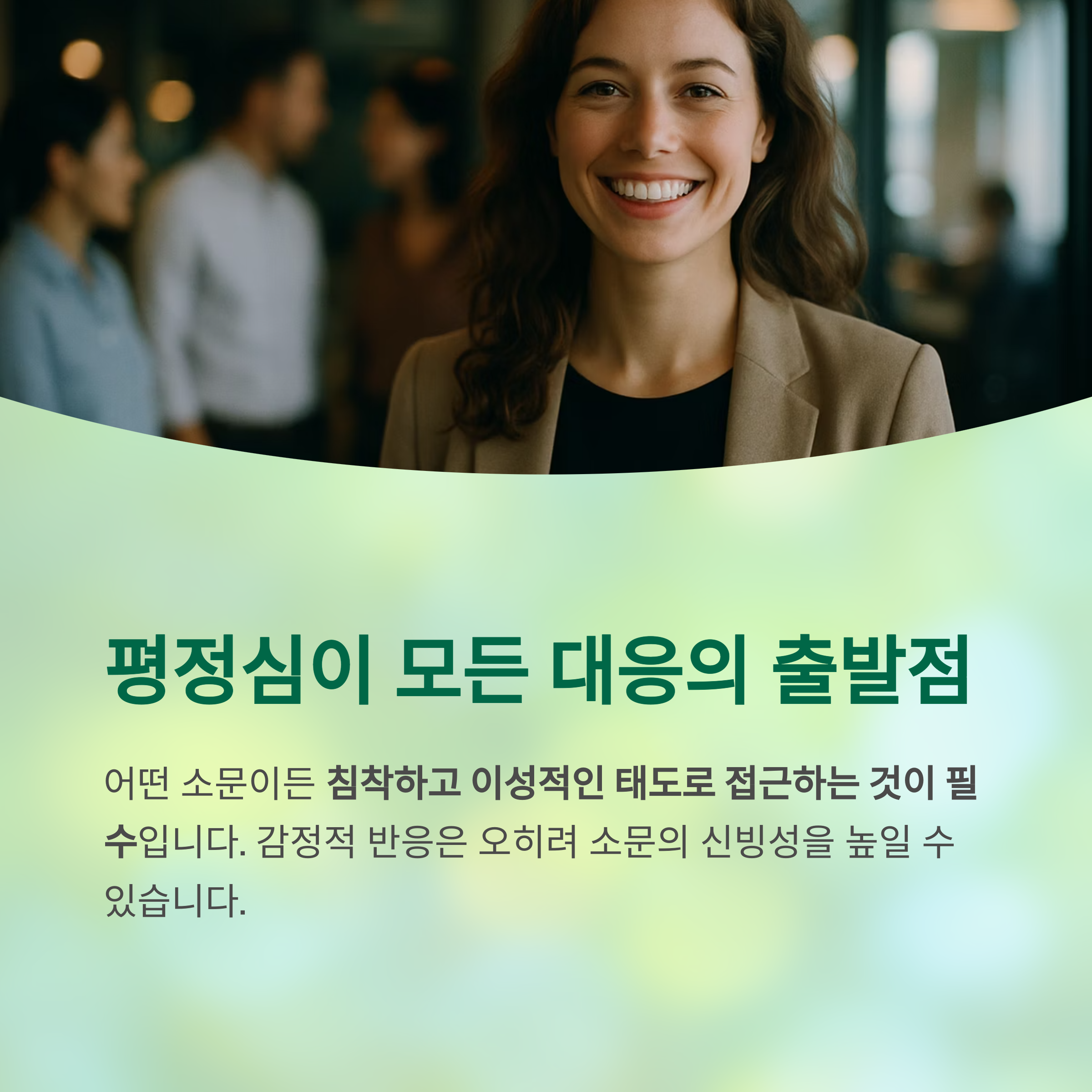 그러나 이때 감정적으로 대응하기보다는 "소문이 시작된 맥락과 경로를 파악하는 것이 중요"합니다.