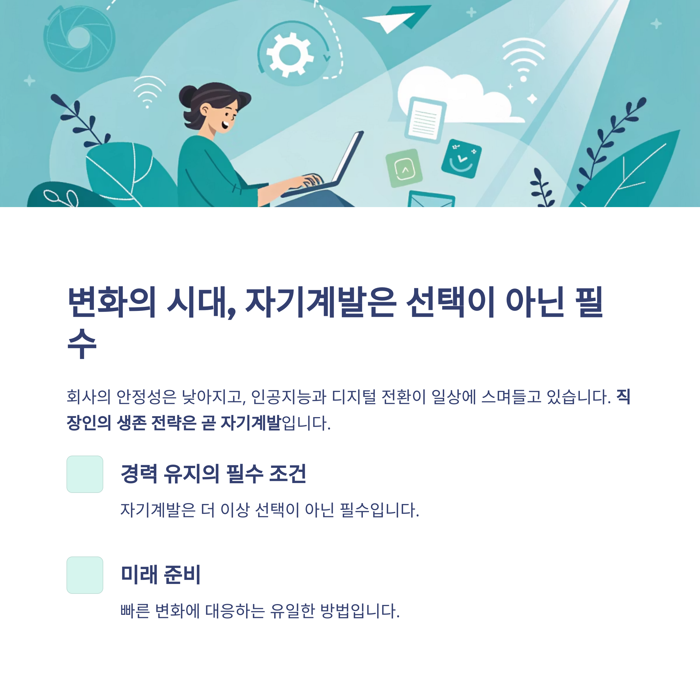 자기계발은 더 이상 선택이 아닌, 경력 유지를 위한 필수 조건이 되었습니다.