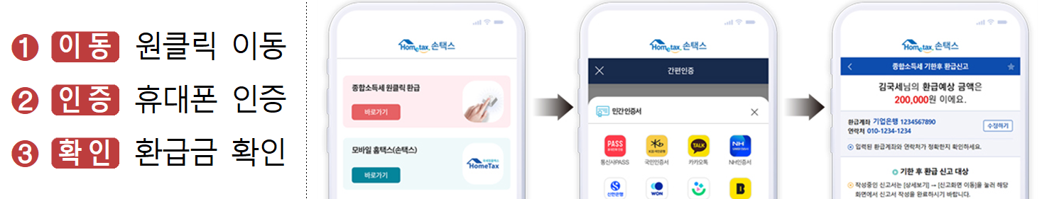 | 간편 로그인 | 휴대폰 인증 등으로 홈택스 접근, 별도 서류 제출 無 |