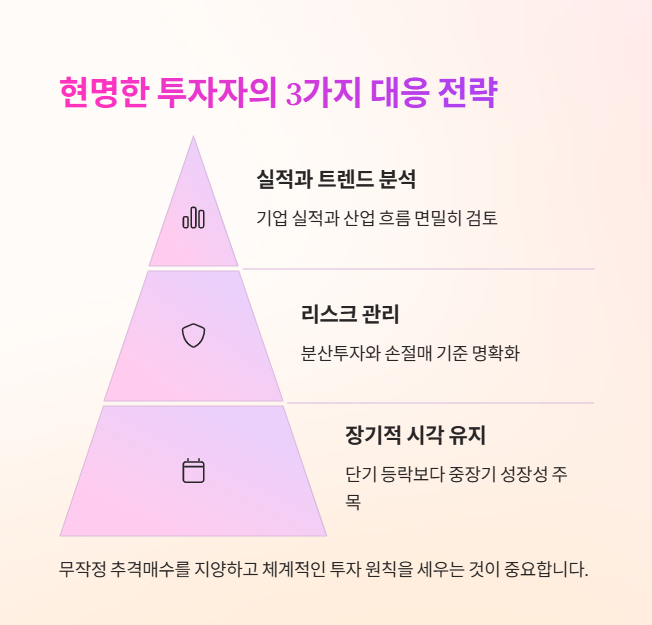 단기적으로는 여전히 변동성이 크기 때문에 분할매수나 장기적 관점에서 접근하는 것이 유리합니다.