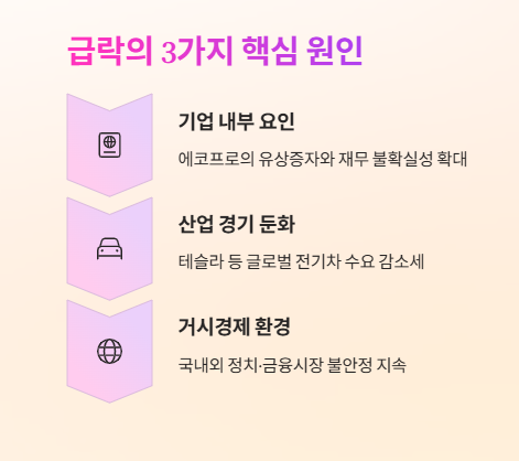 그때 매수했던 저도 처음에는 손절하지 못하고 버티다 결국 절반 이상 하락한 시점에서 뒤늦게 털어내야 했죠. 이른바 패닉 셀링. 지금 생각해도 아찔합니다. 당시에 수많은 개인이 유사한 상황에 놓였고, 에코프로는 '꿈의 주식'에서 '애물단지'가 되는 데 오래 걸리지 않았습니다.