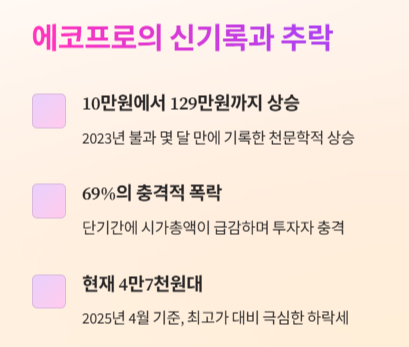 2023년 초, 에코프로의 주가는 10만 원 초반대에서 시작해 불과 5개월 만에 129만 원까지 치솟았습니다. 수많은 개인투자자들이 '기회를 놓치면 안 된다'는 불안감에 매수 행렬에 뛰어들었고, 이른바 ‘국민 주식’이라는 말이 생길 정도였죠. 그러나 그 영광은 오래가지 않았습니다. 이후 급락세는 가혹할 만큼 빠르고 깊었고, 결과적으로 -70% 이상의 손실을 기록한 투자자들도 속출했어요.