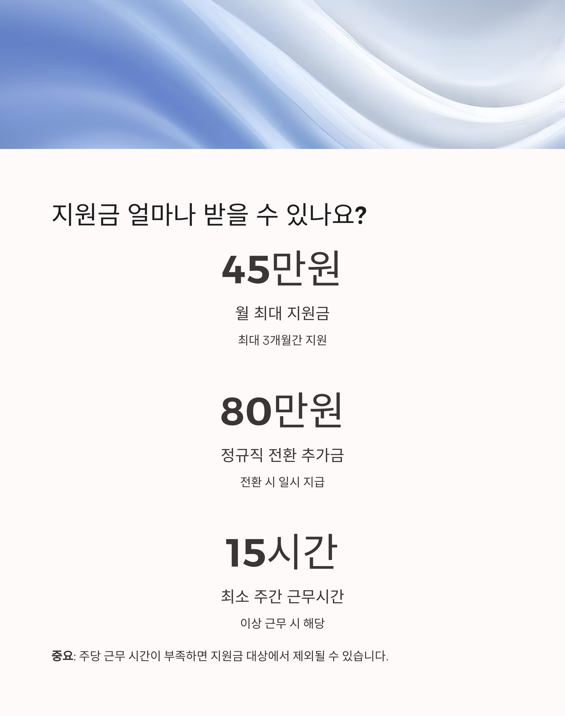 지원금은 월 최대 45만원, 정규직 전환 시 80만원이 추가 지급됩니다.